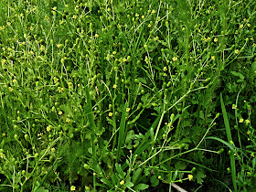 Niet dat deze plant zo bijzonder is, want ze komt algemeen voor op vochtige en drassige stikstofrijke bodems, maar ik wil je er op attenderen deze niet aan te raken of te plukken. Hoewel alle boterbloemen giftig zijn (vandaar dat grazende dieren ze niet eten), is de blaartrekkende boterbloem de meest giftige. Wanneer de bladeren gekreukt, beschadigd of verma- len worden, brengen ze op de menselijke huid lelijke zweren en blaren. De plant heet in de volksmond niet voor niks jeukbloem of kankerbloem. Voorzichtigheid is dus op zijn plaats.